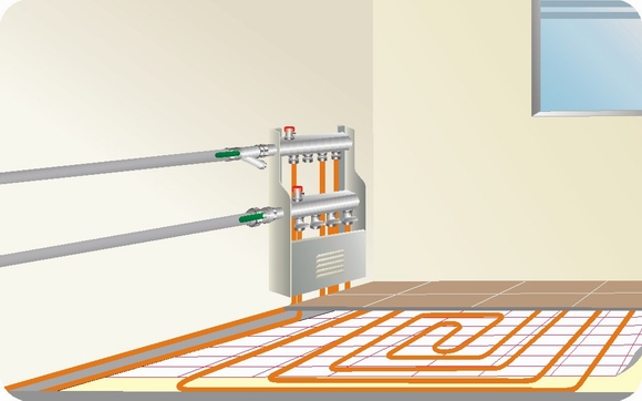 低溫?zé)崴匕宀膳菍⒓訜峁苈裨O(shè)在地板中,以溫度不高于60℃的熱水為熱媒,加熱地面,并以此地面為散熱面,在加熱周圍空氣的同時(shí),還與四周的圍護(hù)結(jié)構(gòu)進(jìn)行輻射換熱,從而使室內(nèi)空氣和四周的圍護(hù)結(jié)構(gòu)表面溫度升高的一種采暖方式。